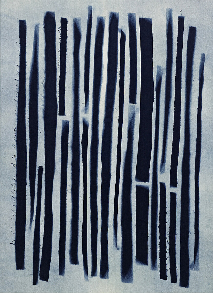 Anja Schwörer U.t., 2014 Blegning/denim 195x142 cm