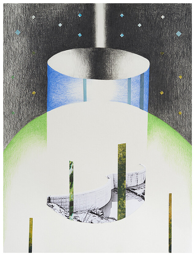 Julie Boserup 'Bend and Shape' Farveblyant og collage på papir 62x47 cm
