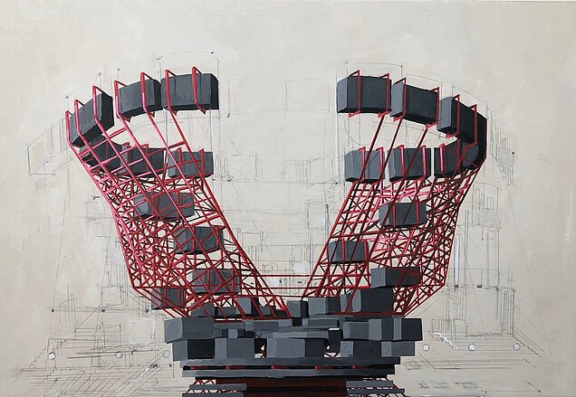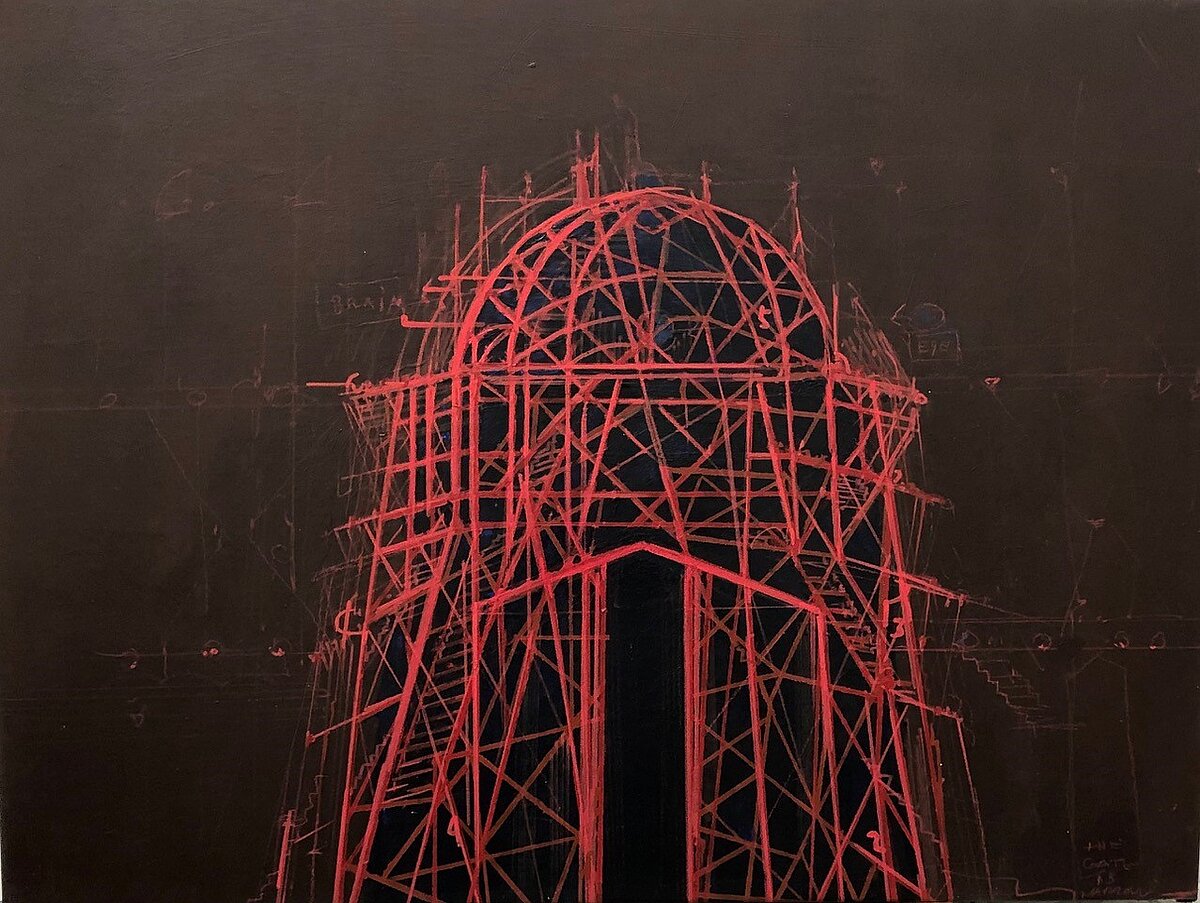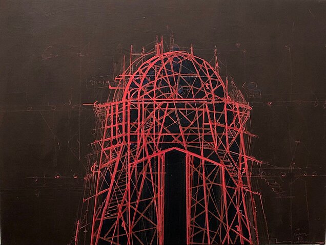 Jes Fomsgaard 'Red Dome' Akryl og pen på lærred 60x80 cm