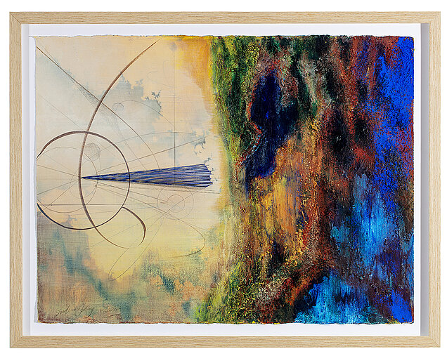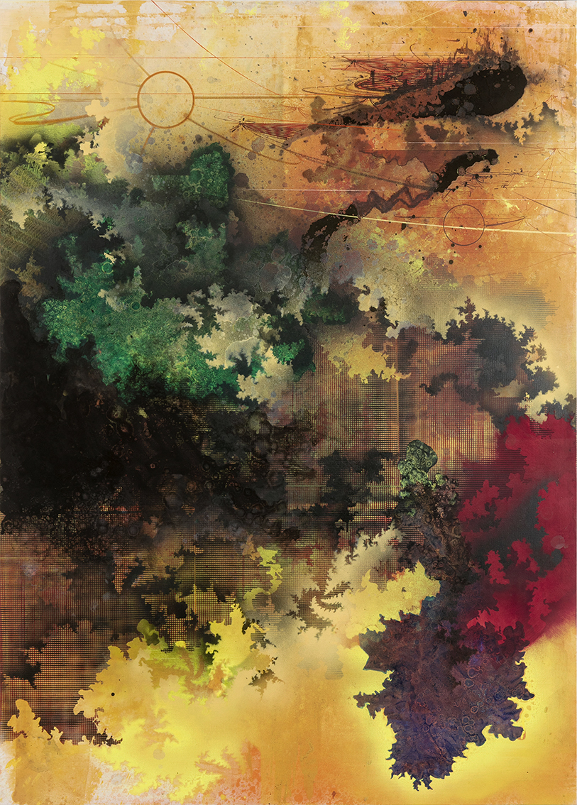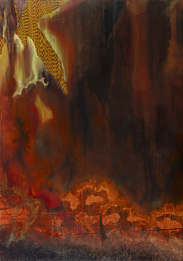 'Under Ground Binary Sun', 2024 Bl.teknik på lærred 160x110 cm