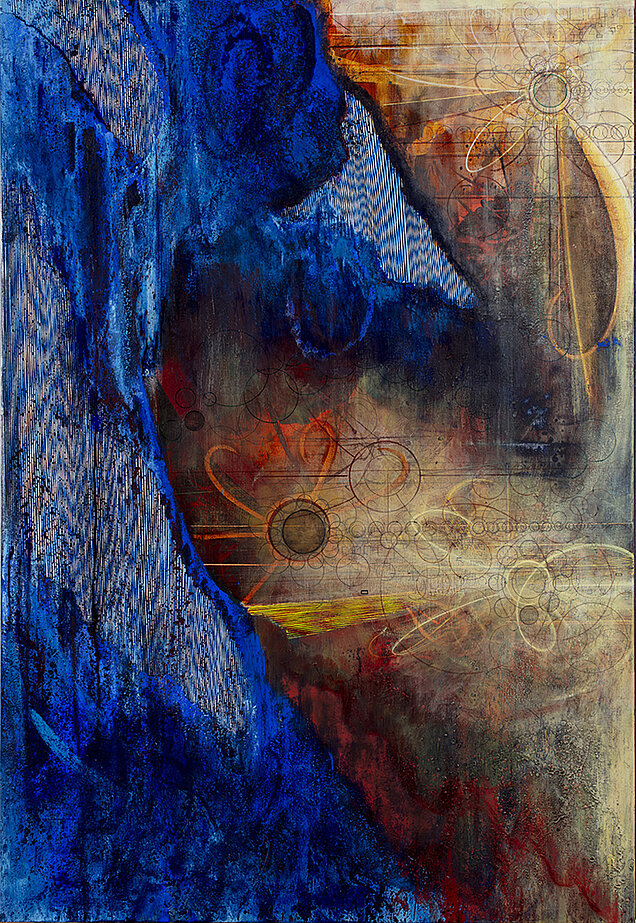 'Blue Bleeding with Free Radicals', 2024 Bl. teknik på lærred 160x110 cm | solgt