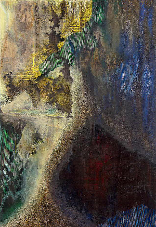 'The Mind in the Cave', 2024 Bl.teknik på lærred 160x110 cm