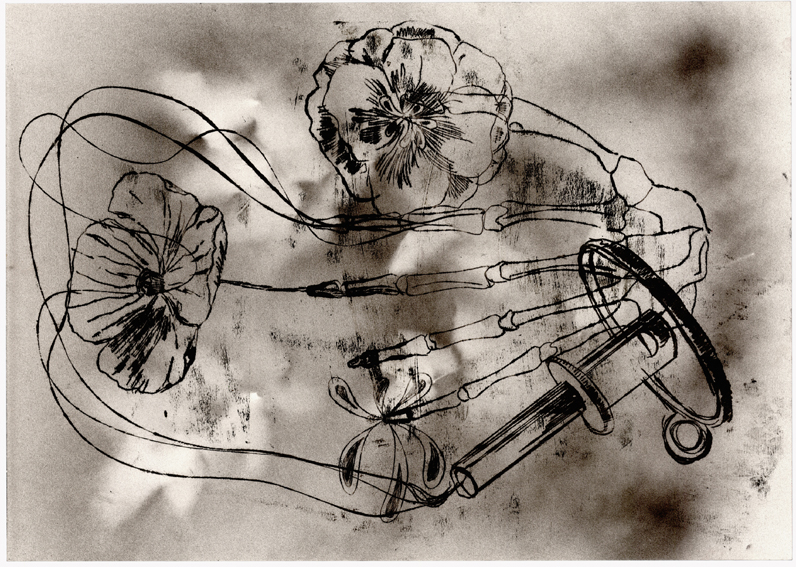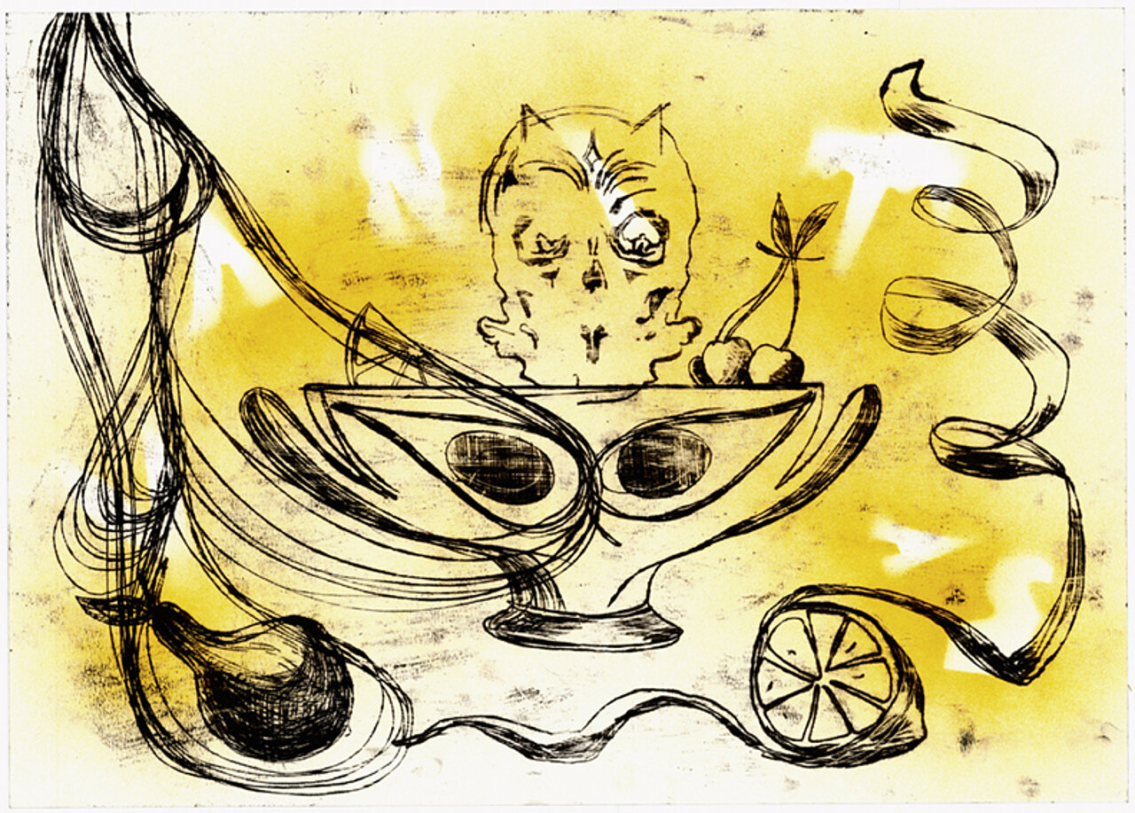 'Shine Bright My Black Light | 2015Olie og linoleumstryk på lærred | 150x120 cm | solgt