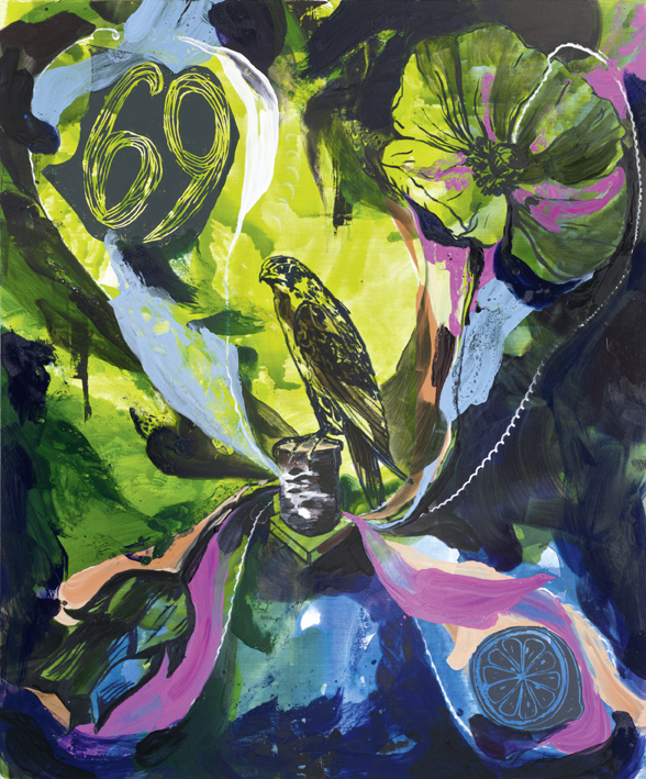 'Peregrine' | 2015Olie og linoleumstryk på lærred | 180x150 cm | solgt