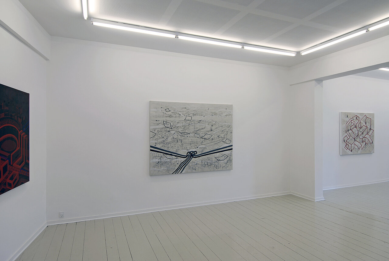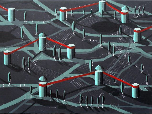 'Kulisse til opera' Bl.tenik på lærred 115x140 cm | solgt