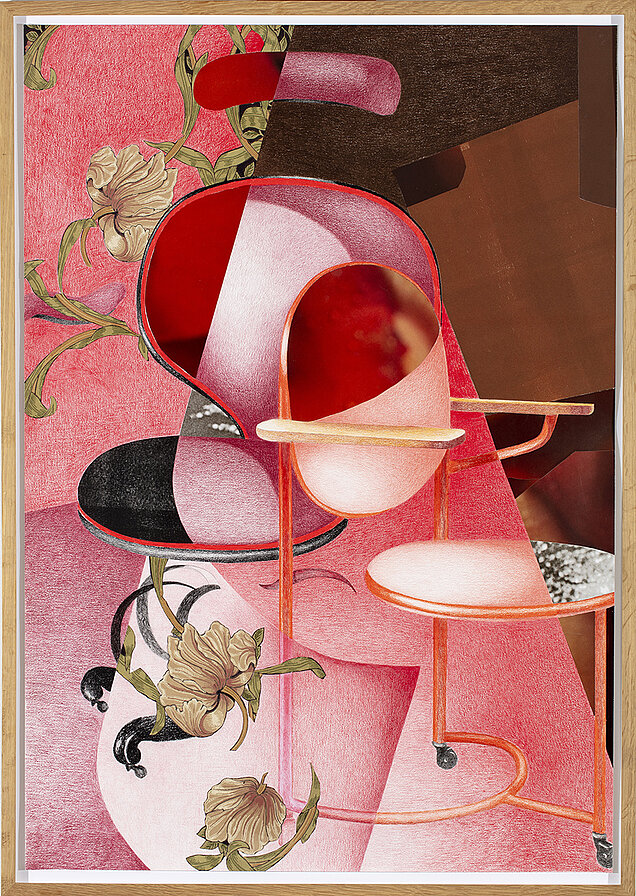 'Red Chairs', 2024 Collage, foto, farveblyant 117x82 cm | solgt