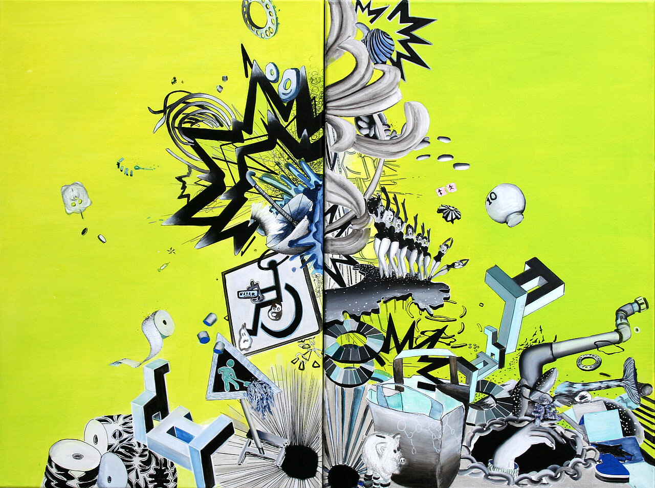 'WE TAKE YO....' Akryl og bl.teknik på lærred 75x120 cm | solgt