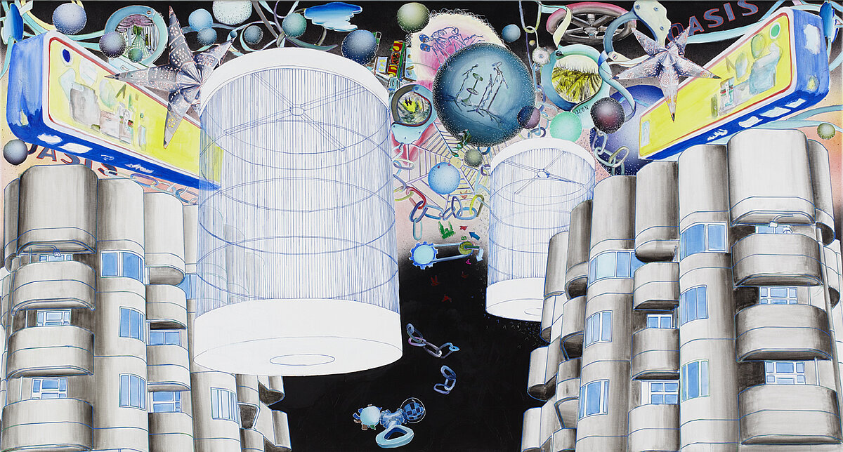 'House of Odd' Akryl og bl.teknik på lærred 75x95 cm | solgt