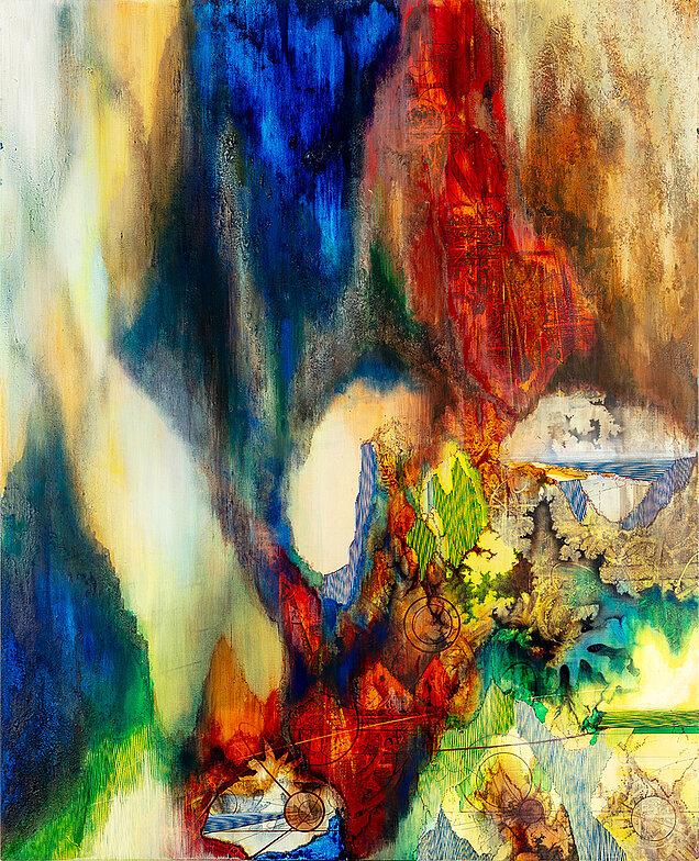 Ferdinand Ahm Krag 'Dionysus Avenue II', 2025 Mixed media på lærred 210x170 cm